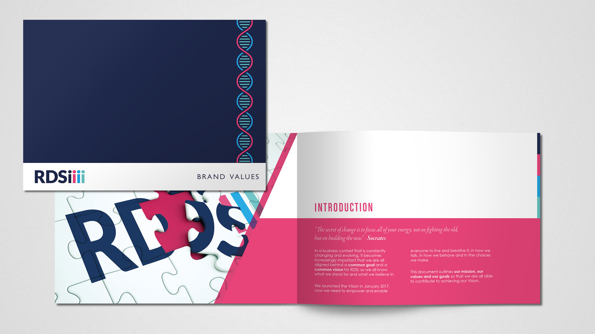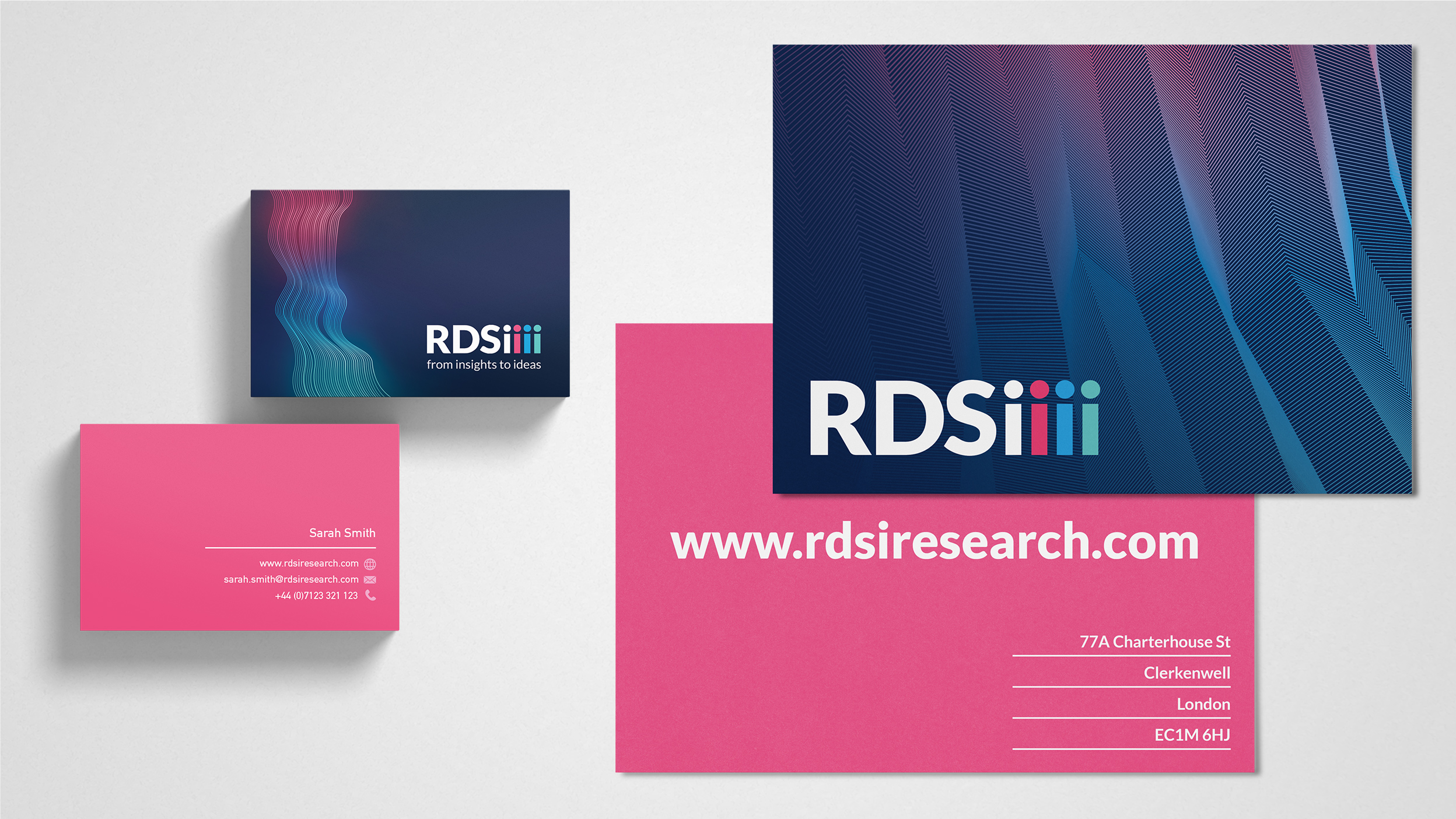 Extracts from various projects for RDSi Research including business cards, postcards and promotional booklets.